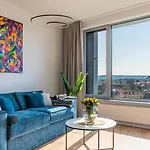 Panoramic Castle View Sky Park Apartment Bratislava de 55 m², întâmpină călătorii în centrul orașului Bratislava, situat la aproximativ 25 de minute de mers pe jos de Catedrala Sfântul Martin din Bratislava. Situat la câteva momente de Apollo Bridge, acest apartament cu 1 dormitoare cu o terasă are vedere spre râu.